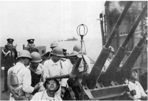Четыре дня спустя 7-я эскадра покинула Куре для поддержки вторжения во Французский Индокитай и прибыла в Сама 22 июля. Через три дня корабли обеспечивали охранение армейского конвоя, доставившего в Сайгон сухопутные войска. В августе началась подготовка ко второй фазе военных действий и корабли эскадры поочередно вставали в сухой док в Куре в период с 31 августа по 13 сентября. 16 сентября эскадра отправилась в очередной поход, вернувшись в Куре через 2 месяца для загрузки топлива и боеприпасов и почти сразу отправилась на Хайнань.
