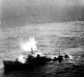 В 1945 году японские силы предпринимали отчаянные попытки сдержать американское наступление и помочь своим войскам, обороняющим Окинаву, отправляя с материковой части Японии один за другим конвои в сопровождении 4-го морского эскорта. 13 марта 1945 года из Кагосимы в Наху вышел конвой Kana 304 (Kana 304 Sentan), включающий четыре транспорта и пять кораблей сопровождения, среди них IJN Tomozuru.
