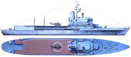 Силовая установка: двухвальная, котлотурбинная, состоит из 4 котлов и двух паровых турбин общей мощностью 40000 л.с..