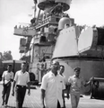 Президент Сукарно посещает KRI Irian. На палубе размещен флотский вертолет Aérospatiale Alouette II - очень редкая для крейсеров проекта 68-бис, не перестроенных в корабли управления, ситуация