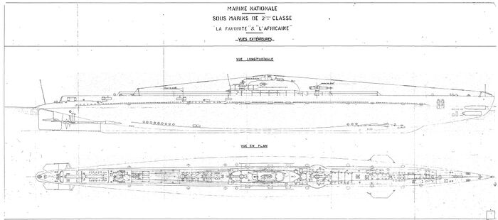 Первоначальный чертёж подводной лодки L'Africaine