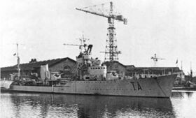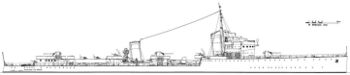 | Вооружение: | 3×2 - 120-мм/50 орудия 2×1 - 40-мм/39 автомата 2×2 - 13,2-мм пулемета 2×3 - 533-мм ТА 14 глубинных бомб до 56 мин |