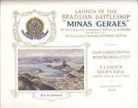 Линкор заложен 17 апреля 1907 г. на верфи Armstrong, Newcastle (Великобритания), спущен на воду в Ньюкасле-на-Тайне. 10 сентября 1908 г. NRB Minas Gerais был крещён сеньорой Реджис де Оливейрой, женой бразильского министра в Великобритании.