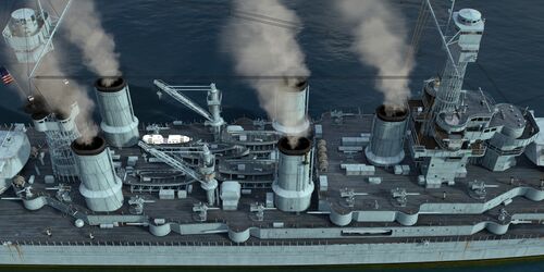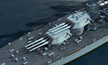 Вооружение | 12 (4×3) — 406-мм/50 орудий Mark 3 16 (16×1) — 152-мм/53 орудий Mark 12 14 (14×1) — 127-мм/25 орудий Mark 17 16 (16×1) — 76-мм/50 орудий Marks 10 24 (24×1) — 12,7-мм/72 пулемета Browning 12 (2×4+4×1) — 533-мм ТА 1 катапульта, 1 гидросамолет |