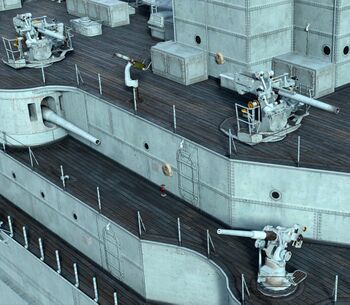 На крыше закрытой ходовой рубки и крыше башни №3 установлены 6-метровые дальномеры. Посты управления на топах мачт получили остекление, защищавшее их от непогоды и опускавшееся в боевой обстановке.