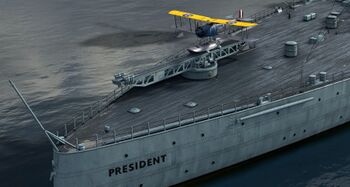 На корме линкора President по левому борту находилась поворотная пороховая катапульта с установленным на ней гидросамолетом «Vought» O2U Corsair - двухместным бипланом смешанной конструкции с неубирающимся сменным шасси, вооруженным 3-4 пулеметами калибра 7,62-12,7 мм.