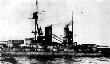 | Вооружение: | 8 (4×2) — 380-мм/45 орудие SK L/45 16 (16×1) — 150-мм/45 орудий SK L/45 8 (8×1) — 88-мм/45 зенитных орудий SK L/45 5 (5×1) — 600-мм торпедных аппаратов, 20 торпед |