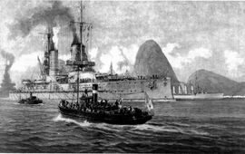 В начале похода корабли дивизии направились вдоль побережья Атлантического океана в германские колонии юго-западной Африки. Посещение немецких колоний начали с Ломе (29-31 декабря), Того (3 января), Виктории и Дуала (соответственно, 2 января и 5-15 января), Камеруна и наконец, Свакопмюнд и бухты Людеритц (соответственно, 21 января и 22-28 января). Затем мимо о. Святой Елены корабли направились к берегам Южной Америки. В гавани Рио-де-Женейро (Бразилия) по поводу прихода германских кораблей здесь состоялся грандиозный фейерверк, а бразильский президент маршал Гермес да Фонсека посетил немецкие корабли. После обхода с юга южно-американского континента корабли зашли (2-11 апреля) в гавань Вальпараисо (Чили). Обогнув в обратном направлении мыс Горн, по пути посетив множество гаваней, среди которых была Бахиа Бланка (25-28 апреля) и Сантос (7-12 мая), 16 мая корабли вышли из Рио-де-Женейро.