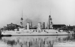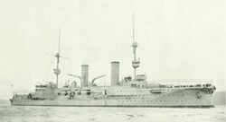 Строился специально для заморской службы и стал первым из 14 броненосных крейсеров, постройка которых предусматривалась 2-й редакцией "Закона о флоте".