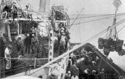 Броненосный крейсер SMS Prinz Heinrich получает уголь от угольщика Hermann Sauber