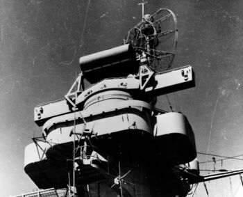 КДП орудий главного калибра Mark-38 с РЛС Mark-13 линкора USS Iowa. Сан-Франциско, июль 1947 г.Запуск гидросамолета «Curtiss» SC-1 Seahawk с борта линкора USS Iowa. Сан-Франциско, июль 1947 г.