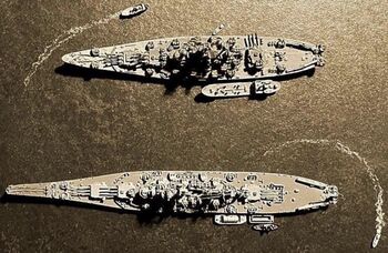 Линкоры USS North Carolina (вверху) и USS South Dakota.Линкор USS North Carolina, апрель 1942 г.Линкор USS South Dakota у Восточного побережья США, 9 август 1943 г.Линкор Yamato на испытаниях, 30 октября 1941 г.Линкор Kirishima типа Kongo у побережья Японии, 1937 г.