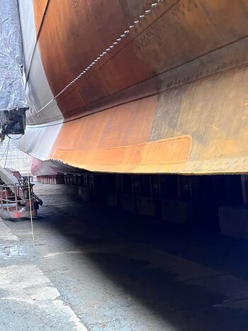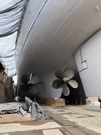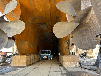 Винто-рулевая группа линкора USS Iowa, стоящего в доке «Avondale Shipyards». Вествиго, Луизиана.