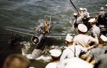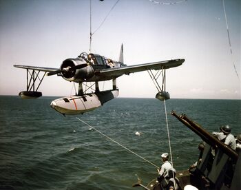 Гидросамолет «Vought» OS2N-1 Kingfisher линкора USS Missouri, лето 1944 г.