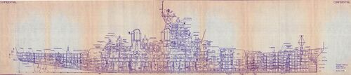 Линкор USS Missouri. Продольный разрез. Альбом чертежей