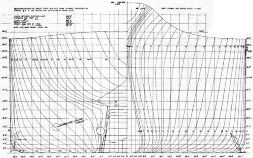 Линкор USS Iowa. Теоретический чертеж корпуса. Копия подлинного чертежа