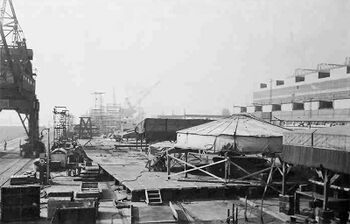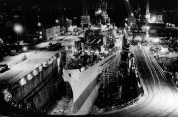 Постройка корпуса линкора USS Kentucky. Военно-морская верфь, Норфолк, 4 февраля 1946 г.