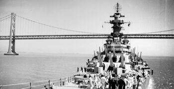 Линкор USS Missouri выходит из Перл-Харбора, 29 сентября 1945 г.