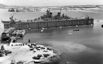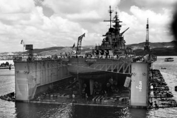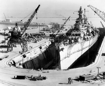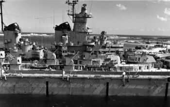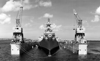 Линкор USS Wisconsin ведет огонь по ж/д тоннелю. Корея, середина марта 1952 г.USS Wisconsin входит в док USS AFDB-1. Гуам, 5 апреля 1952 г.USS Wisconsin в плавучем доке USS AFDB-1. Гуам, 5 апреля 1952 г.Носовая надстройка USS Wisconsin, стоящего в плавучем доке USS AFDB-1. Гуам, 5 апреля 1952 г.Кормовын 406-мм башня и надстройка линкора USS Wisconsin, 1945 г. На переднем плане - 20-мм автоматы «Oerlikon».
