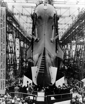 Спуск на воду USS Iowa. Верфь Нью-Йорка, 27 августа 1942 г.
