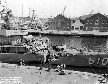 Эсминец USS Eaton после столкновения с USS Wisconsin. Норфолк, 8 мая 1956 г.Линкор USS Wisconsin проходит мост «Золотые ворота». Сан-Франциско, сентябрь 1945 г.Линкор USS Wisconsin, 1950-е гг.Линкор USS Wisconsin и USS Oriskany. Сасебо, 27 октября 1953 г.Файл:USS Wisconsin 65.jpgЛинкор USS Wisconsin.Файл:USS Wisconsin .jpgЛинкор USS Wisconsin.