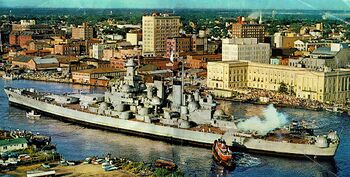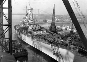 Линкор USS North Carolina в Нью-Йорке, конец 1945 г.