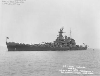 Величественный линкор при входе в гавань Нью-Йорка и выходе из нее на многочисленные испытания привлек к себе столько внимания, что тут же получил кличку «Showboat» («Показушный корабль»), которая сохранилась за ним по сей день. 3 сентября 1941 года линкор вышел из Нью-Йорка в Чезапикский залив, а оттуда направился в пробный поход по Карибскому морю. После возвращения в Нью-Йорк 6 декабря на нем поднял свой флаг командующий 6-й дивизией линкоров контр-адмирал Дж. У. Уилкокс, но на следующий день - день японского нападения на Перл-Харбор - Уилкокс перенес флаг на старый USS Texas. После интенсивных учений и артиллерийской практики в районе у острова Мэйн и Карибском море USS North Carolina 5 июня 1942 года ушел из Норфолка на Тихий океан.