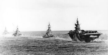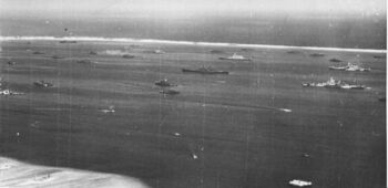 Боевая группа TG-38.3 на пути к ат.Улити после Филиппинской битвы, 12 декабря 1944 г. USS Langley, USS Ticonderoga, USS Washington, USS North Caroline, USS South Dakota, USS Santa Fe, USS Biloxi, USS Mobile и USS Oakland.