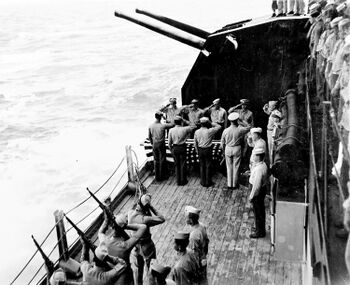 Кормовая палуба линкора USS North Carolina. Церемония ввода в строй, верфь ВМС, Нью-Йорк, 9 апреля 1941 г.