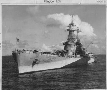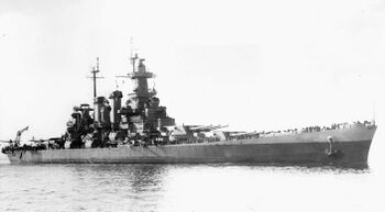 | Вооружение | 12 (3×4) — 356-мм/50 Mark B, 16 (6×2+4×1) — 127-мм/38 Mark 12, 16 (4×4) — 28-мм/75 Mark 1 8 (8×1) — 12,7-мм/72 Browning |