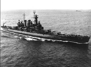 - ↑ Основным типом палубного самолета был двухместный однопоплавковый гидроплан Vought OS2U «Kingfisher» («Зимородок», выпущено 1518 экз.). Его модификация OS2U-1 имела следующие характеристики: взлетный вес - 2750 кг; размах/длина/высота - 10,94/10,31/4,59 м; девятицилиндровый звездообразный двигатель «Pratt&Whitney» R-985-48 Wasp Jr. мощностью 450 л.с., скорость - 285 км/ч, дальность полета - 1300 км, практический потолок - 4000 м, вооружение - два 7,62-мм пулемета, 300-500 кг бомб, экипаж 2 человека.
