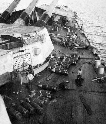 Боезапас 127-мм/38 орудий Mark 12 составлял 500 выстрелов на ствол, из которых 50 находились в подбашенном перегрузочном отделении. Имелись два типа боевых снарядов: