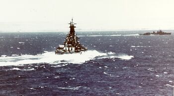 | Вооружение | 12 (3×4) — 356-мм/50 Mark B, 16 (6×2+4×1) — 127-мм/38 Mark 12, 16 (4×4) — 28-мм/75 Mark 1 8 (8×1) — 12,7-мм/72 Browning |