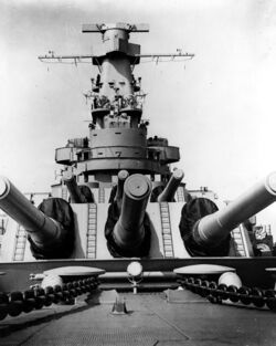На крыше боевой рубки находился третий КДП главного калибра на основе директора Мark-40, в состав которого входили два перископа Мark-30 и один Мark-32. На поворотной башне монтировался стереоскопический 4,6-мертовый дальномер, демонтированный в конце войны ввиду наличия артиллерийского радара Мark-27. Данный пункт управления огнем считался резервным.