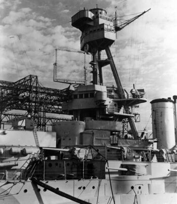 Файл:New York d.jpgЛинкор типа New York.Вид спереди на броневую рубку и мостики линкора USS New York. Верфь ВМС, Нью-Йорк, 21 января 191 г.