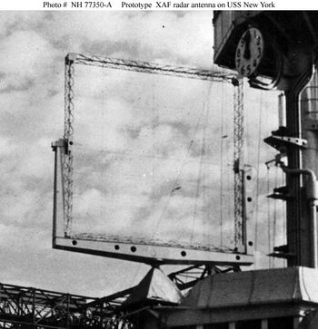 Антенна радара XAF, установленная на USS New York в 1938 г. Музей верфи ВМС в Вашингтоне, 1974 г.