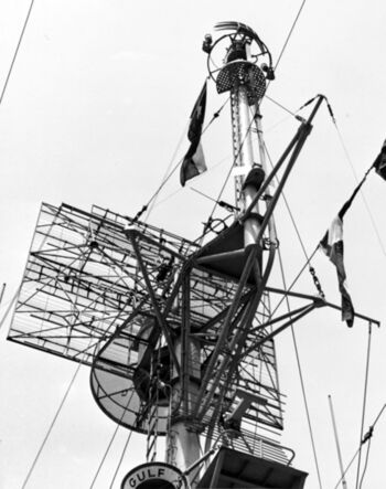 РЛС на кормовой мачте линкора-музея USS Texas, 5 апреля 1948 г.