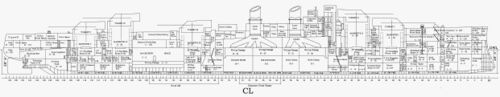 Линкор USS Texas, 1944 г. Продольный разрез.