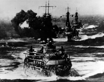 Линкор USS Texas. Хэмптон Роадс, 16 октября 1929 г.Атлантический флот в походе, 1914-15 гг. Впереди - USS Arkansas или USS Wyoming, затем - USS New York или USS Texas, следом остальные девять линкоров флота.