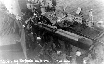 - ↑ Однако, есть свидетельства того, что и Соединенные Штаты, и Великобритания еще в 1919 году проводили эксперименты с торпедным вооружением. Британский директор по военно-морскому строительству (DNC) призвал приостановить британские испытания из-за опасений, что иностранные военно-морские силы могут вдохновиться на разработку оружия, эффективного против существующего типа защиты, которая использовалась во время Первой мировой войны против обычных торпед.