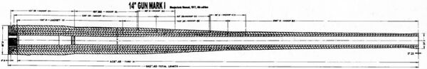 - ↑ Кроме того, 305-мм/50 орудие Mark XI с проволочной конструкцией ствола имело низкую продольную прочность и сильно колебалось при выстреле, что приводило к большому разбросу снарядов в залпе.