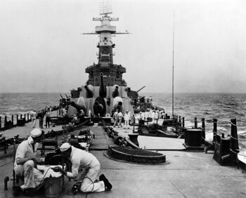 Файл:USS Washinghton 11.jpg Линкор USS Washinghton на верфи ВМС в Филадельфии, 29 мая 1941 г. Отсутствуют антенны РЛС.
