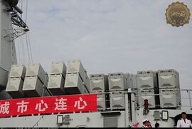 В качестве мер ПВО использовались ЗУР малой дальности Haihongqi-7 («Хунци-7», букв. «Красное знамя-7») в ПУ, разработанной на основе французской ЗРК Crotale. Во время модернизации 2015 года ЗРК Haihongqi-7 заменили на 32-контейнерную вертикальную пусковую установку ЗРК H/AKJ-16, способную запускать ЗУР HQ-16 (боекомплект 16 ед.) и ПЛУР Yu-8. Как правило, боекомплект состоит из 20 ЗУР и 12 ПЛУР.