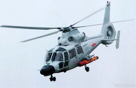 Эсминец Shenzhen в сопровождении вертолёта Z-9C