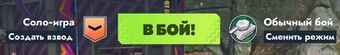 Кнопка «В БОЙ!» позволяет выйти в бой в выбранном режиме боя. Выбор режима боя доступен по кнопке справа от кнопки «В БОЙ!».
