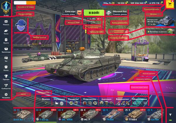 Подведём итог: интерфейс ангара имеет большой функционал, который даёт большое понимание о возможностях игры даже без выхода в бой. Его освоение позволит комфортно проводить время между боями.