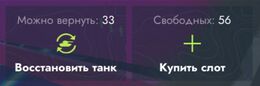 В самом конце карусели техники находятся два функциональных окна: восстановить танк и купить слот: