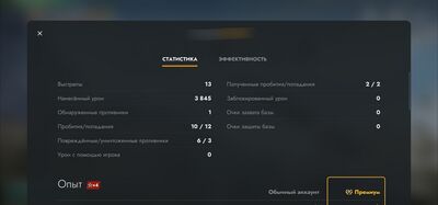 - Боевая составляющая статистики за сражение (количество урона, выстрелов, полученные пробития и т. д.).