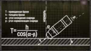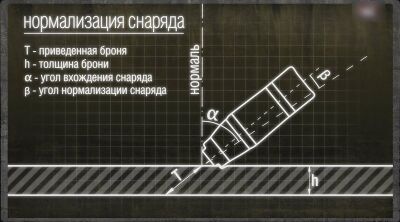 - Нормализация (угол, на который доворачивает снаряд, если не было рикошета) равна 5 градусам для бронебойных снарядов и 2 градусам для подкалиберных. У фугасных или кумулятивных снарядов нормализации нет.