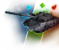 Пустынные карты – максимальная скорость +10 %, скорость поворота корпуса +25 %, тяговооружённость +14,5 %. Зимние карты – Прочность +200 ед., двигатель и ходовая выдерживает больше попаданий, а скорость их ремонта увеличивается. Летние карты – урон в минуту +7,7 %, время сведения -11,7 %, разброс на 100 м -0,1 м, уменьшается разброс в движении и повороте башни.
